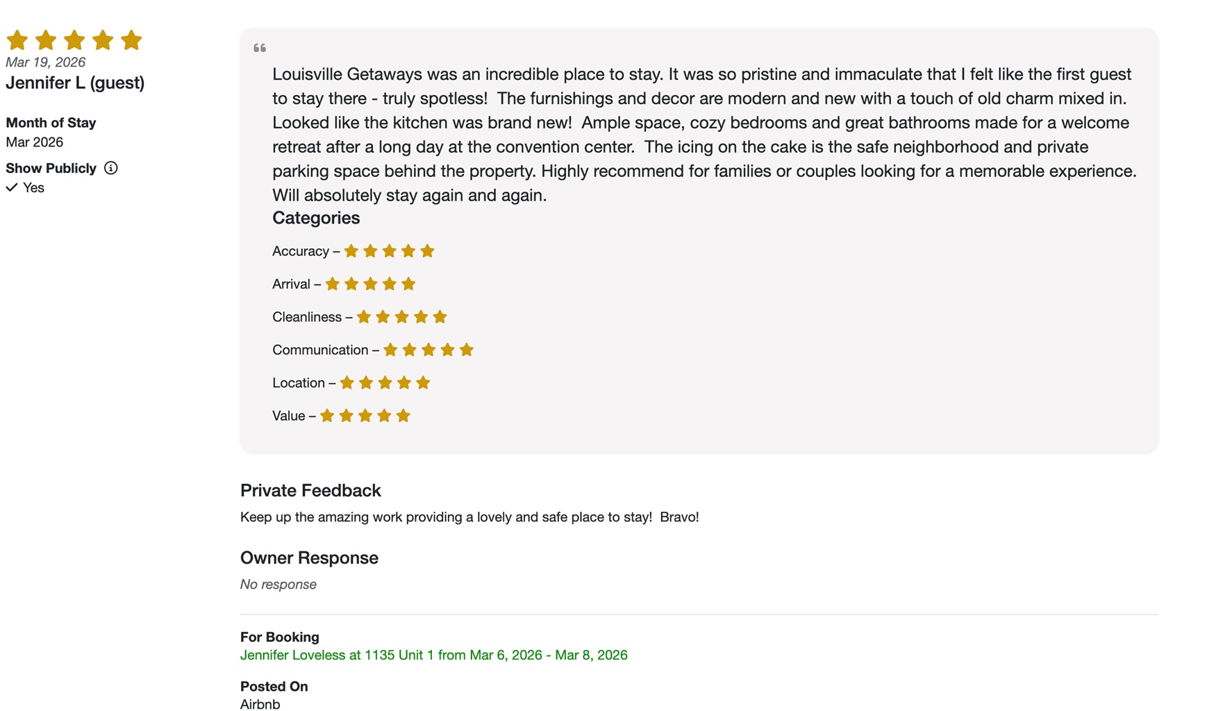 Louisville Getaways Great review of the month! Posted on March 20, 2026 BEST OF Louisville Getaways Great Reviews Feature: Categories BEST OF 1 DEALS 1 Latest Posts Great review of the month! Hello Again:) Subscribe By RSS